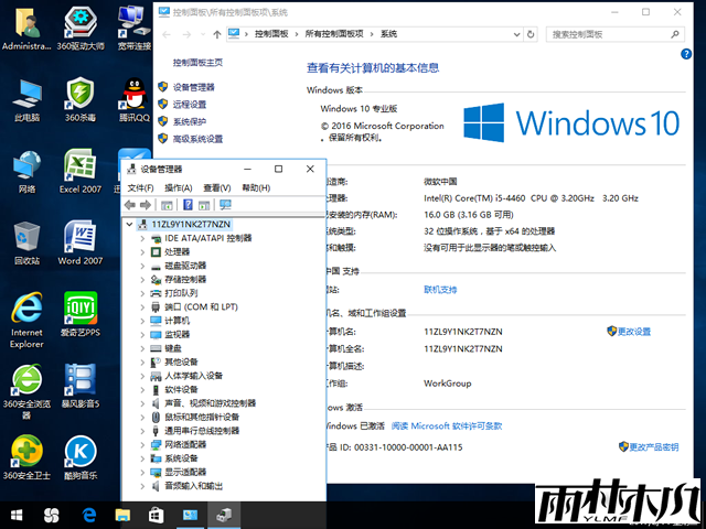 系统名称::雨林木风Ghost Win10 32位360安全版YN2017