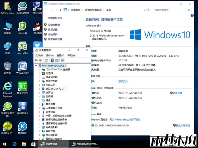 雨林木风Ghost Win10 64位360安全版YN2017