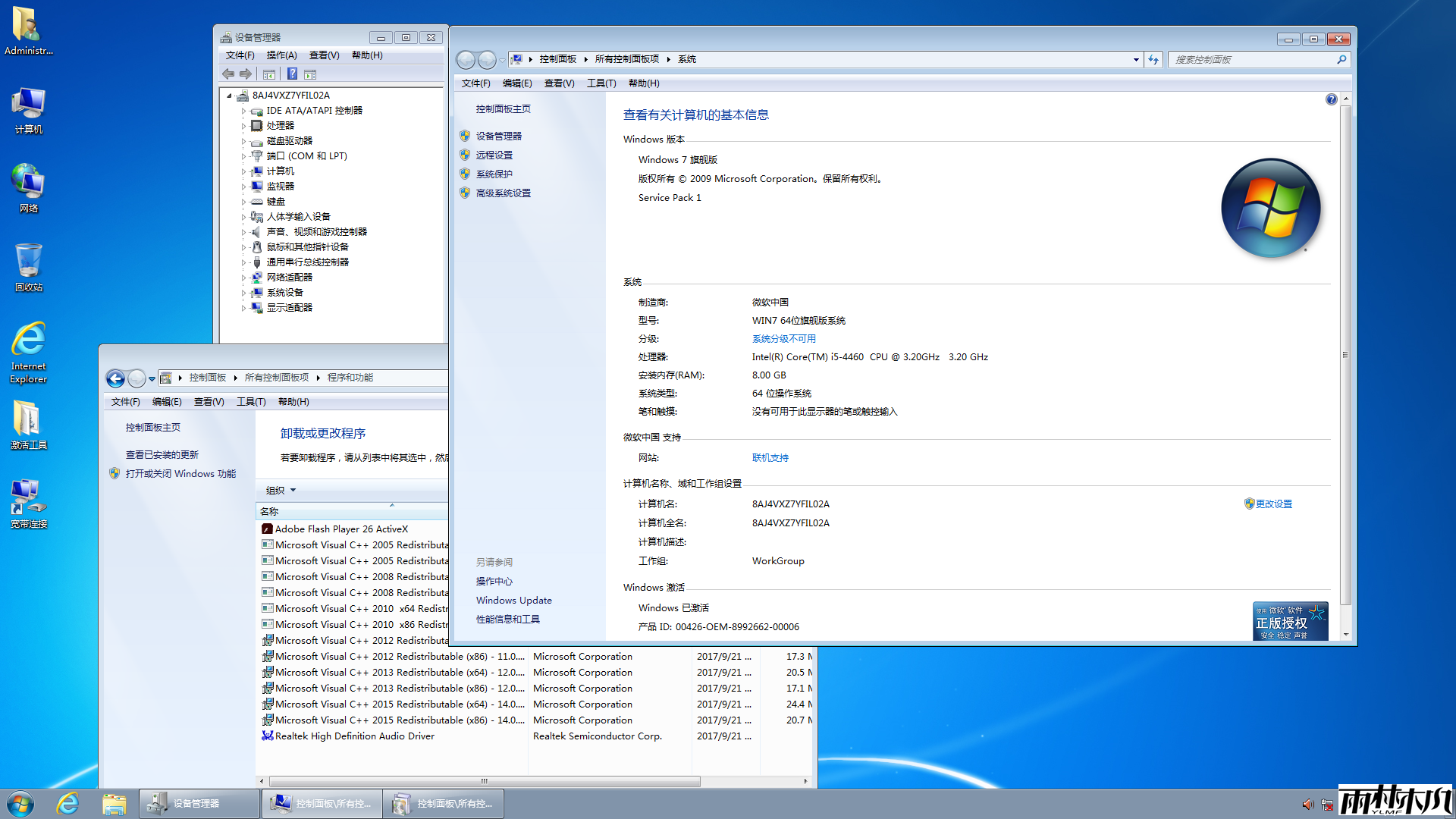 * 系统使用OEM序列号自动激活,支持自动更新。
