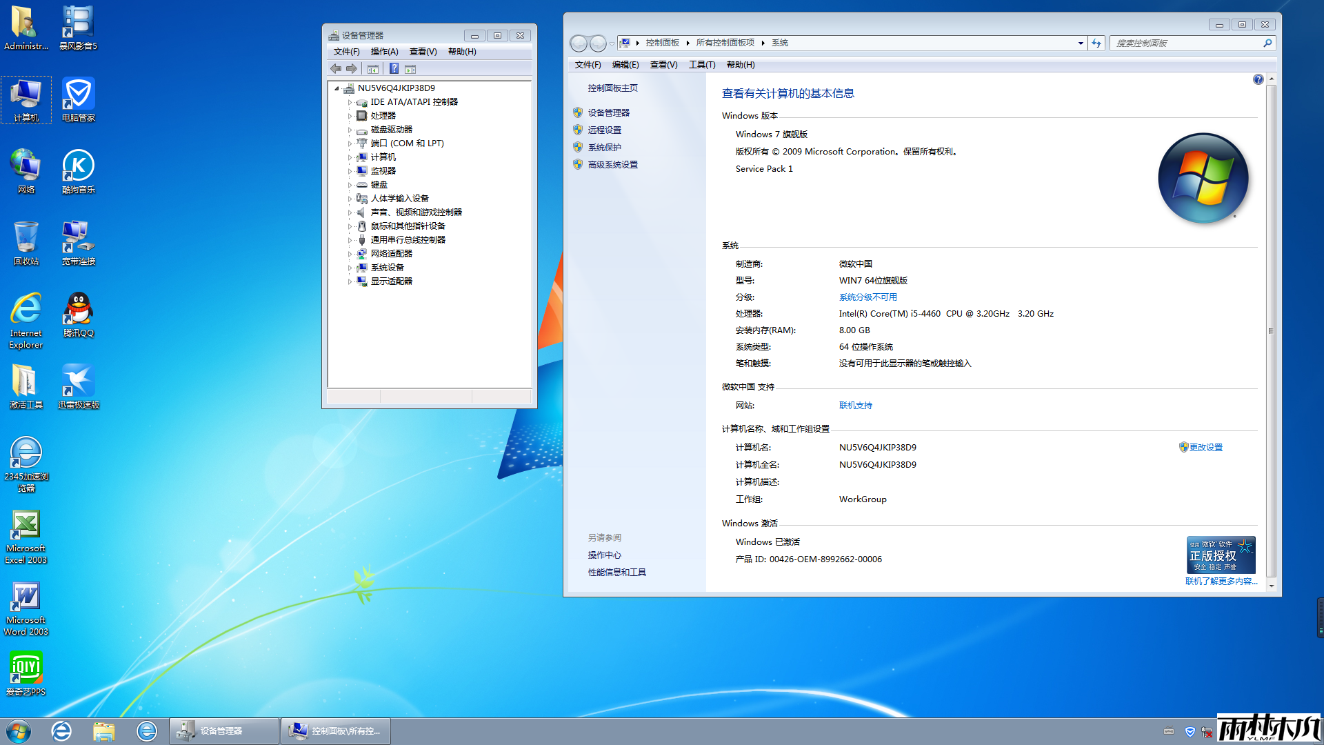 系统自动激活,部分机子出现没激活现象,可到雨林木风技术官网下载激活工具即可以激活成功。