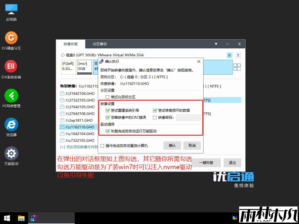 在弹出的对话框中保留“尝试重建系统引导”,其它按需勾选,nvme硬盘装win7请在ghost完后运行万能驱动导入nvme驱动,不然可能进不了系统