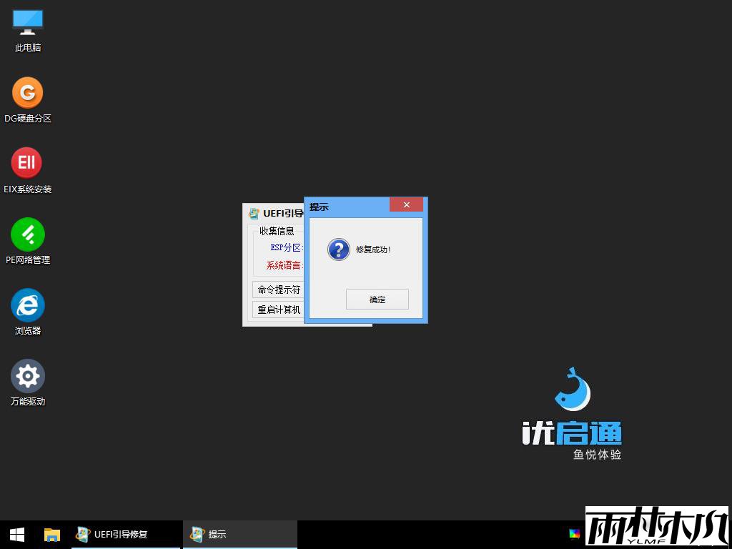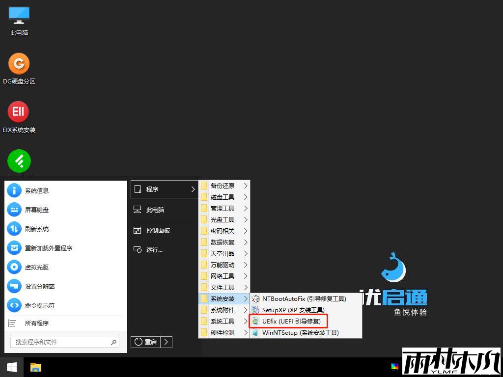 有的ghos装机工具并未自带修复引导功能, ghost完重启可能会引导不了进系统,这时就要用到修复uefi工具,还是进pe系统运行uefix