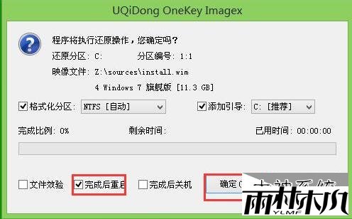 此时弹出的确认提示窗口中,勾选复选框“完成后重启”,接着点击确定,如图: