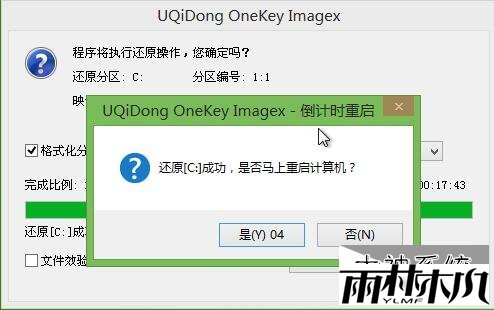 此过程大约需要数分钟的时间,在此切勿操作其他相关u盘操作,操作结束后在弹出的窗口中点击“是”重启计算机即可: