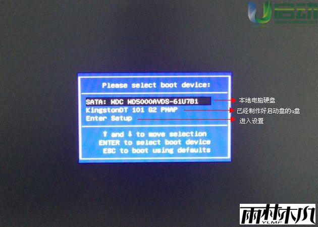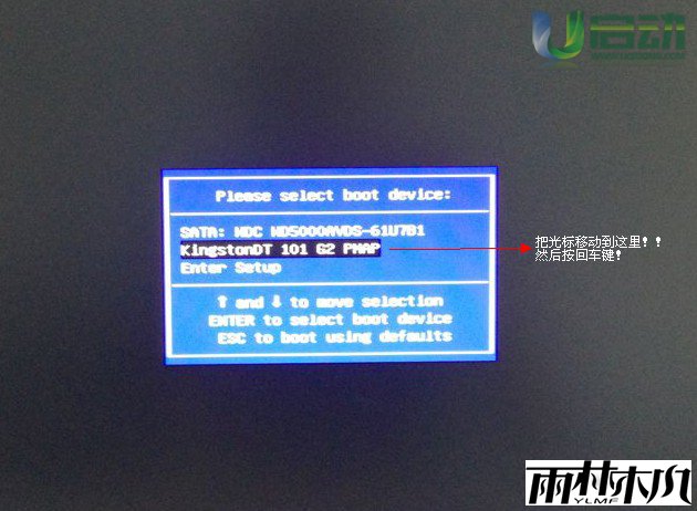 最后需要做的是:当我们移动到中间那个选项以后,按下”回车键“(也就是Enter键)即可!然后它就会自动从u盘启动了!!