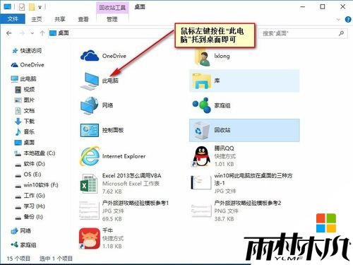 2、将“此电脑”拖拽到桌面