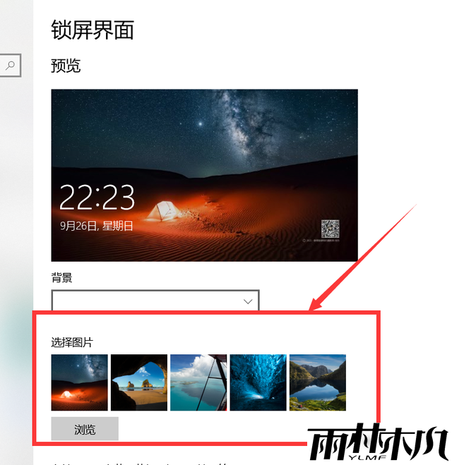 5、选择自己选中的图片,或者点击浏览查看更多的图片资源进行选择。 确保您想要的图片位于图片阵容的最左侧,然后进行设置的保存即可。