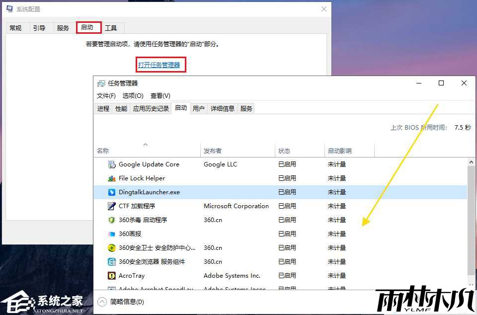 步骤3:以后,将标签栏切换至【启动】网页页面,点一下【开启资源管理器】按键,先后选定全部不用启动应用程序,并点一下【禁止使用】按键。若整洁启动后难题没有看到,那样可以试着逐渐开启以前禁止使用程序并重新启动电脑,查找问题所属。