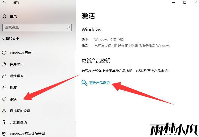 在左侧菜单中点击 “激活”,然后点击 “更改产品密钥”。