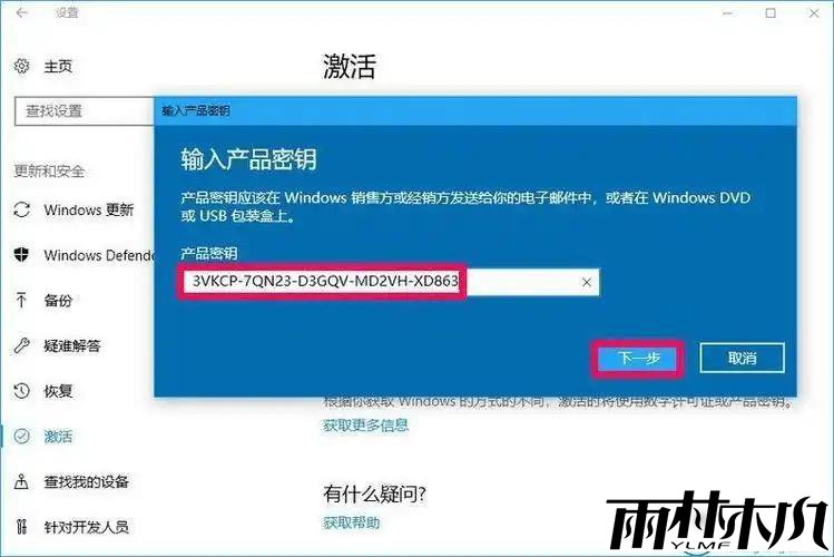 输入有效的 Windows 10 专业版密钥,按照屏幕上的提示完成激活过程。
