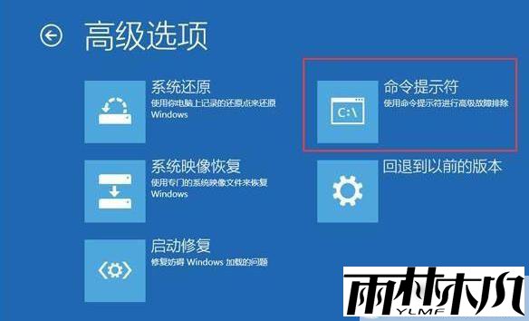 重建 BCD:从 Windows 10 安装媒体启动并打开高级选项菜单,选择命令提示符。