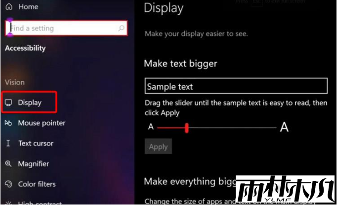 4.我们在右侧找到”Make text bigger"字体调节。点击“Apply应用”就可以调节win11字体大小。