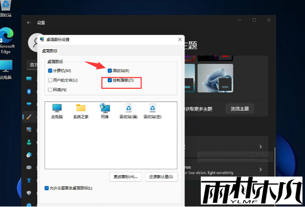 5、最后我们将勾选回收站,并点击确定即可让回收站返回到桌面当中。