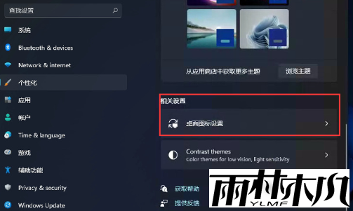 3、点击之后,我们在右侧往下拉,点击“桌面图标设置”选项。