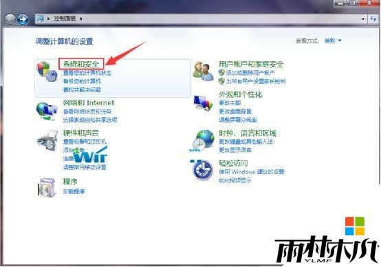 2 在“控制面板”界面中,点击“系统和安全”;如图2所示
