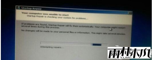 雨林木风Win7系统突然断电后重启显示“Startup Repair”