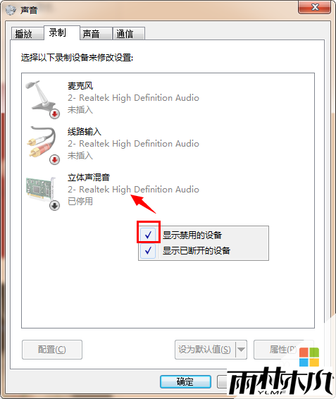 雨林木风 win7系统声卡没有“立体声混音”的解决方法