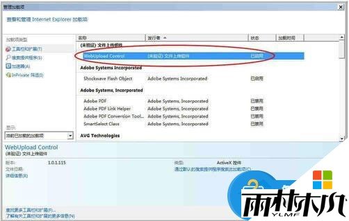 8、即可成功安装相应ActiveX控件,从【管理加载项】,可见相应未验证的ActiveX控件已启用。