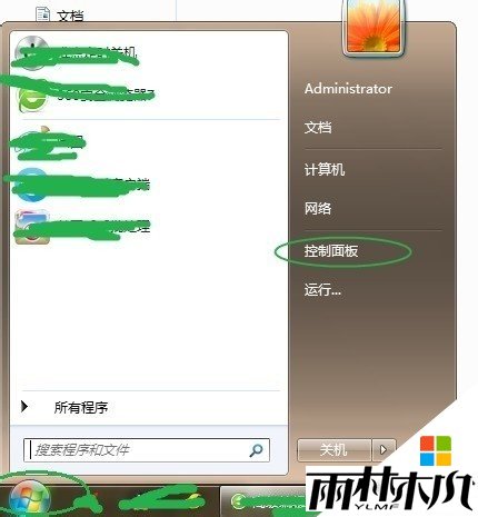1点击左下方window系统logo,出现下面图示,找到“控制面板”;