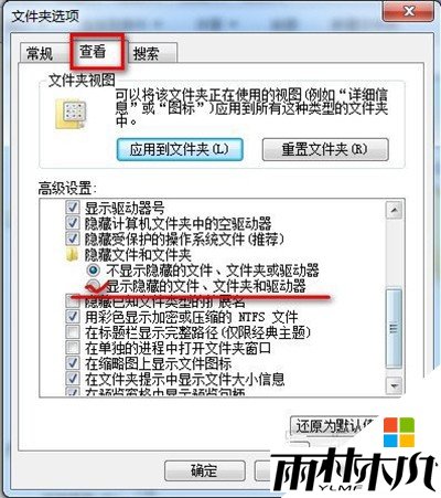2:“查看”-“高级设置”-“显示隐藏的文件。。.”,点击应用,再点击确定。