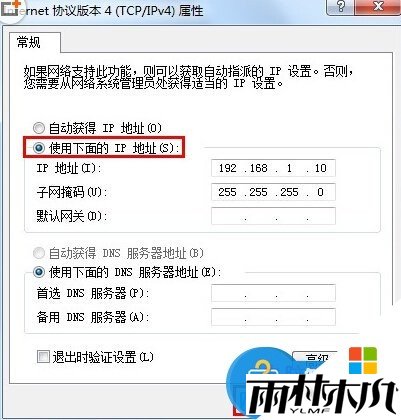 雨林木风WIN7系统手动设置固定IP地址的操作方法