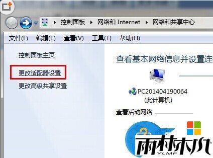 2、弹出 网络和共享中心 的界面,点击 更改适配器设置