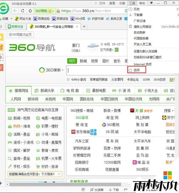 2、打开360安全浏览器窗口,寻找到工具栏选项: