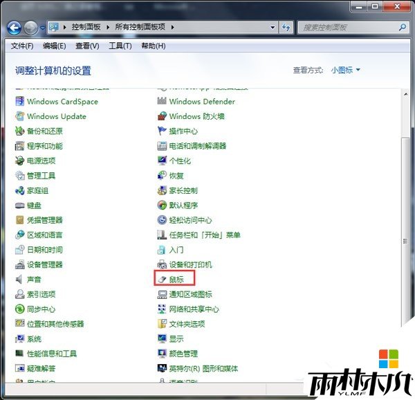 6、当然也可以设置鼠标灵敏度,把它调低一点。打开控制面板,找到鼠标设置:
