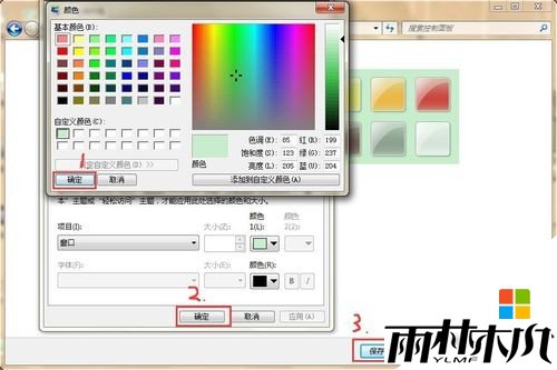 “颜色”窗口点击【确定】→“窗口颜色和外观”窗口点击【确定】→【保存修改】,这样系统原本白底的窗口如txt、word、网页都会变成绿豆沙色。