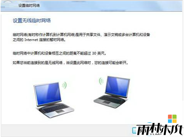 3、选项打开之后,在里面直接选择“设置无线临时网络”选项,然后点击下一步,如图所示: