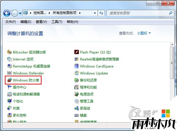 2、看一下你Win7系统的防火墙是不是处于开启状态,是开启状态就关闭它试试看能不能发现。