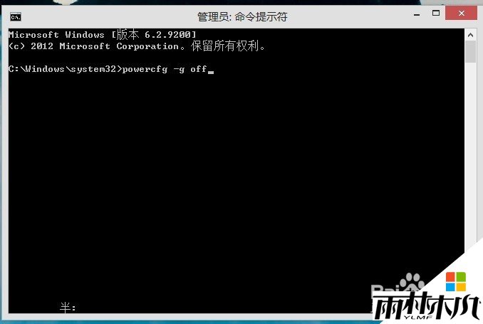 在CMD界面输入: powercfg -h off 命令,如下图: