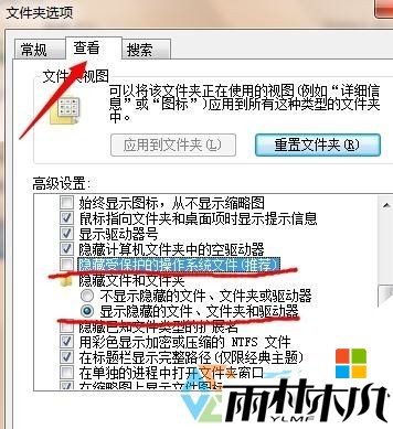 在“查看”栏中,将“隐藏受保护的操作系统文件”的对勾去掉,而将“显示隐藏的文件,文件夹和驱动器”前面打上对勾。