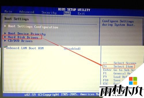 再按方向键“↓”移动到“Hard Disk Drives”;
