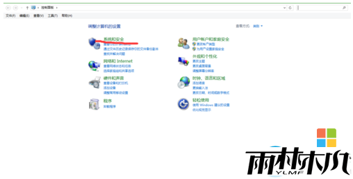 4、进入安全模式的电脑桌面。点击“开始”选择“控制面板”。点击“系统和安全”;