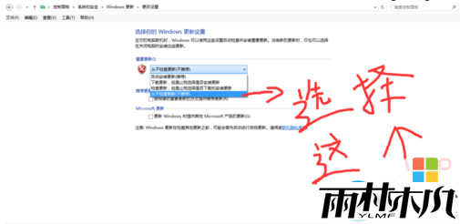 5、点击“启用或关闭自动更新”。在重要更新那一栏选择“从不检查更新”然后保存然后重新启动,问题就能解决。