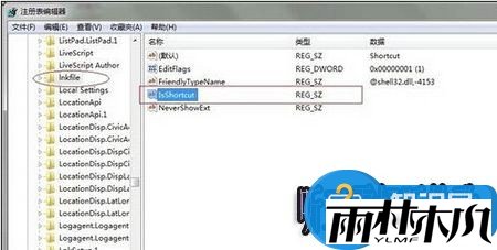 2、找到到HKEY_CLASSES_ROOTlnkfile,点击查看右窗格中是否包含有名称为IsShortcut的键值,未发现有时,右键“新建(N)”,“字符串值(S)”,重命名为IsShortcut;继续定位到HKEY_CLASSES_ROOTpiffile,同样查看右窗格是否包含IsShortcut键值,没有时同样建立一个。完成后关闭注册表编辑器,注销系统并重新登入。如果确是由删除IsShortcut键值引起的故障,用此方法可完美解决,但快捷方式的小箭头也将同时恢复。