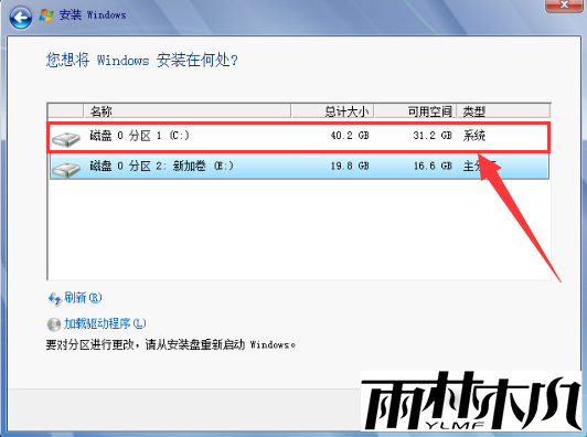 6、选择安装系统的硬盘(一般为C盘)