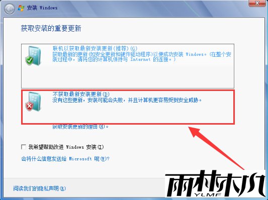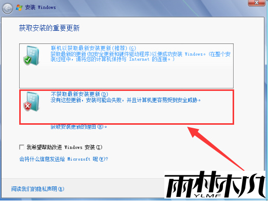 3、选择“不获取最新安装更新”