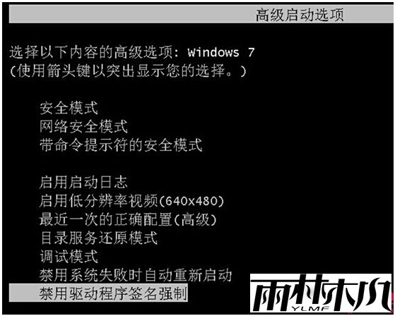 在高级启动菜单中选择 “禁用驱动程序签名强制”,按下回车即可进入系统。