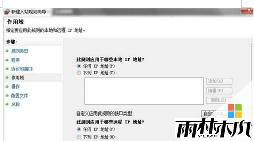 接着点击左侧的“作用域”,选择为任何ip地址;