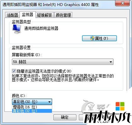 3、选择“监视器”,将颜色改成“增强色(16位)”;