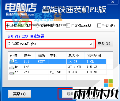13、分区完成后,就可以开始安装Win7系统了,运行桌面上的 一键装机或 onekey ghost 等如下图,选择Win7.GHO,选中C盘,然后确定就可以开始安装过程;