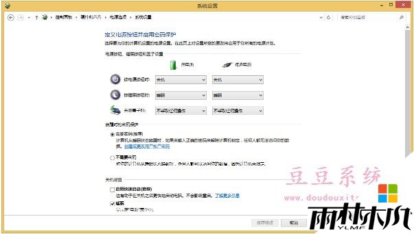 1、控制面板->硬件和声音->电源选项->更改电源按钮的功能->更改当前不可用的设置