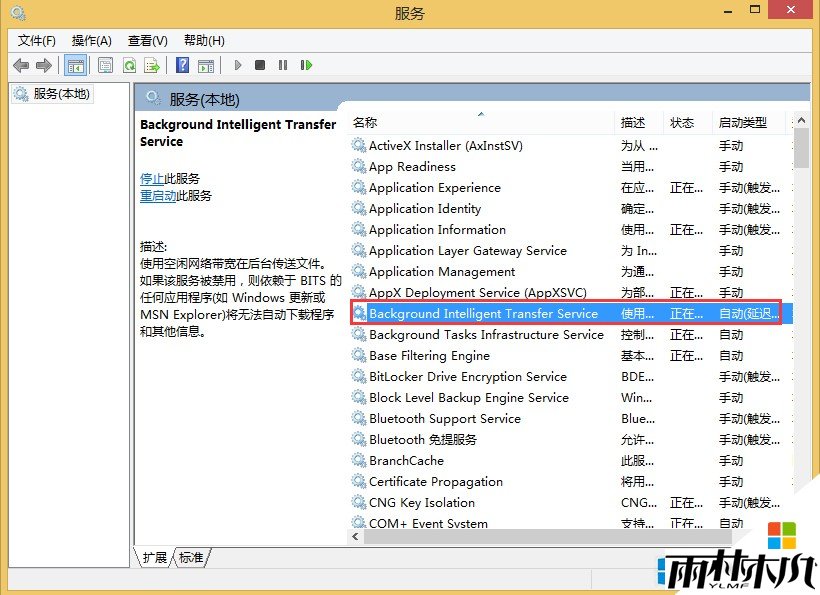 3、在服务列表中找到Background Intelligent Transfer Service,双击它;