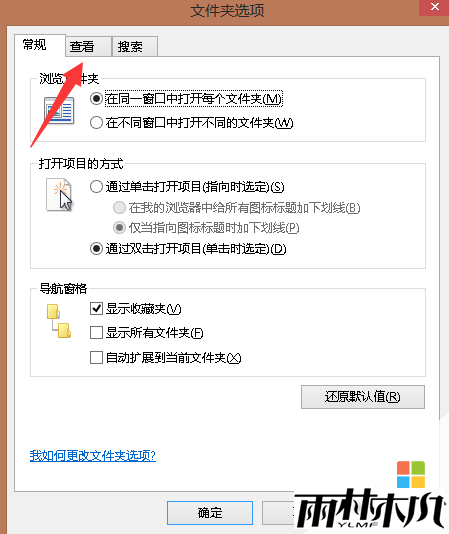 进入文件夹选项对话框,点击上方菜单栏处”查看“
