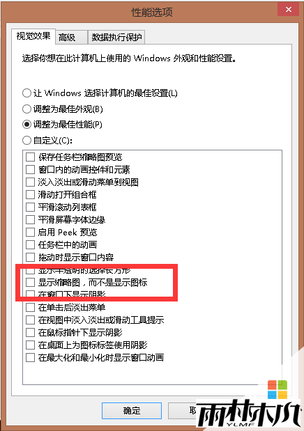当然我们也可以到系统性能设置界面,将下图选项勾选即可