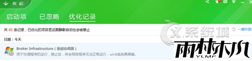 2、同样在任务管理器中打开360,进入 优化加速-优化记录-恢复broker infrastructure基础协调器服务为启动项重启即可。