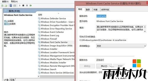 2、找到windows font cache service服务项,设置为自动或手动启动服务后重启即可