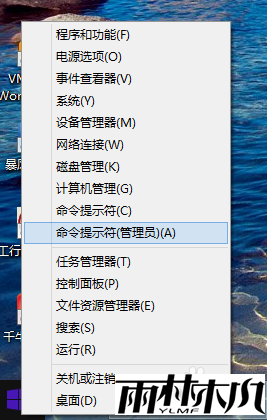 1启动win8系统进入桌面。鼠标移动到左下角 窗口图标处,点击鼠标右键,出现图示菜单。选择 命令提示符(管理员)